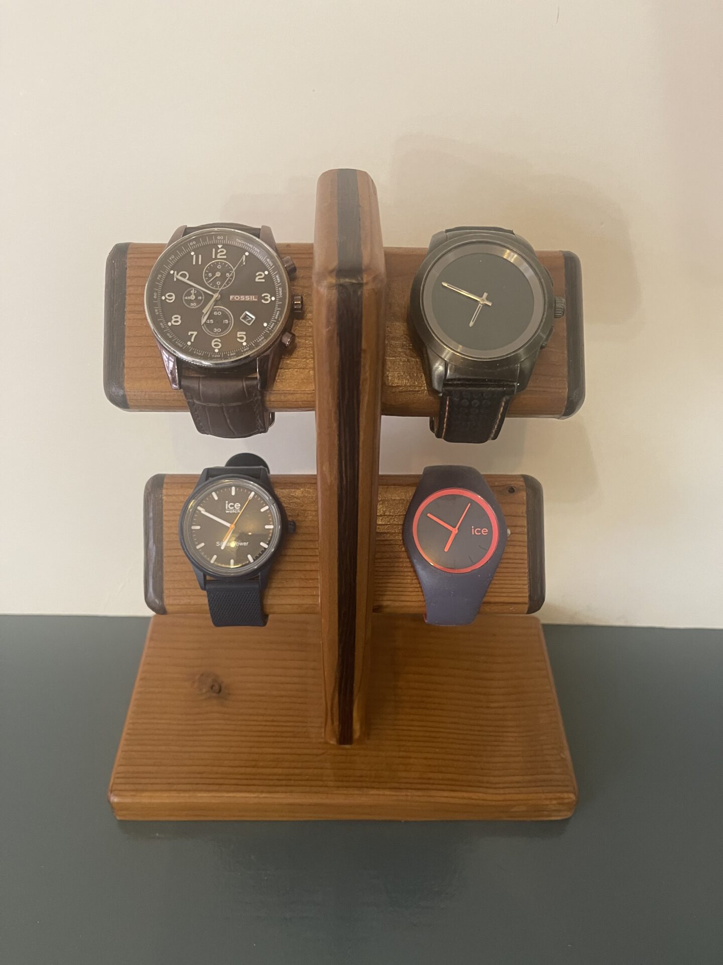 Met ruimte voor vier horloges combineert deze standaard functionaliteit met een warme, natuurlijke uitstraling.